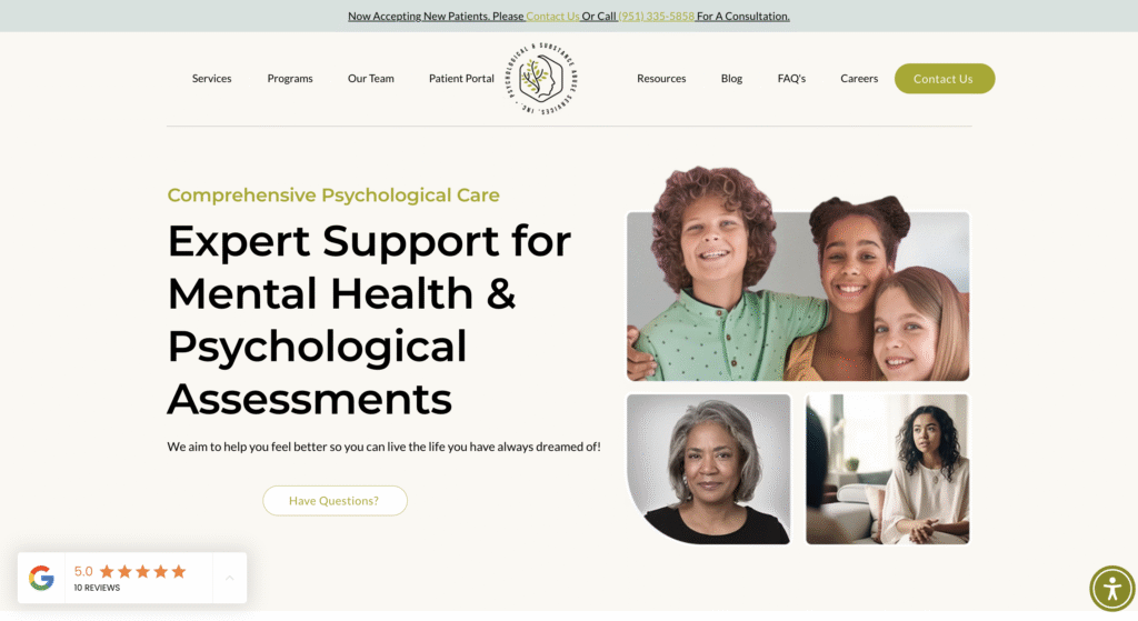 Psychservices.online is a group therapy practice in California that specializes in psychological assessments, programs and customized mental health solutions for clients ages 5+.