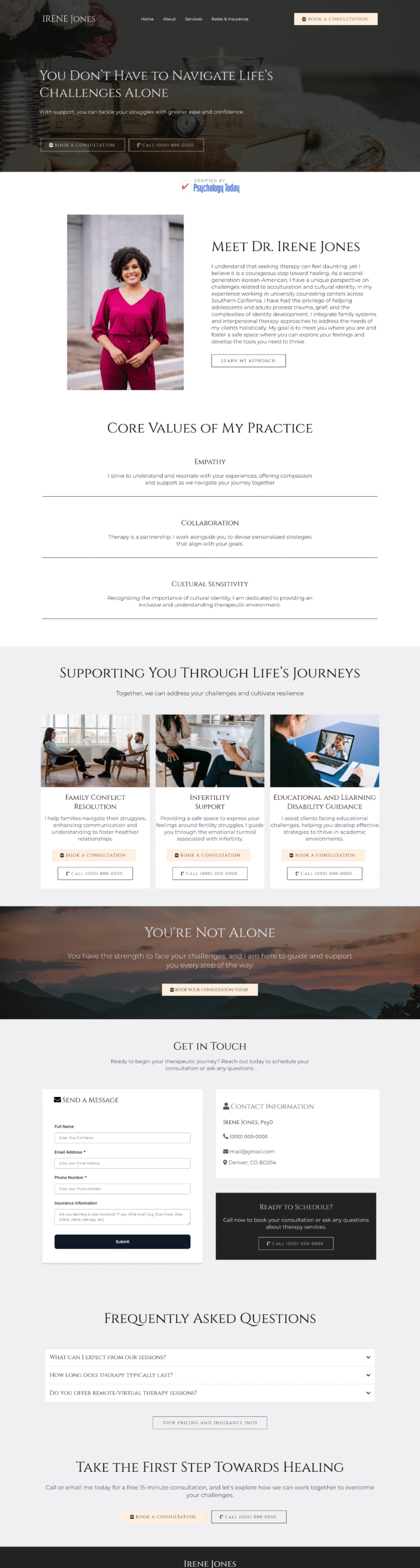 Disclaimer: This website design is a template. All layouts, colors, and features are highly customizable to match your practice’s unique brand and needs.